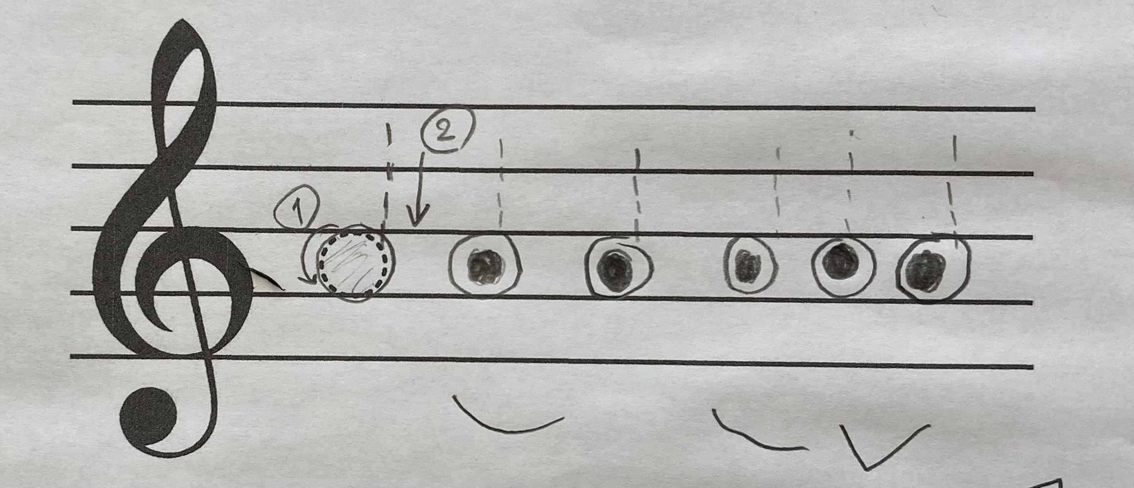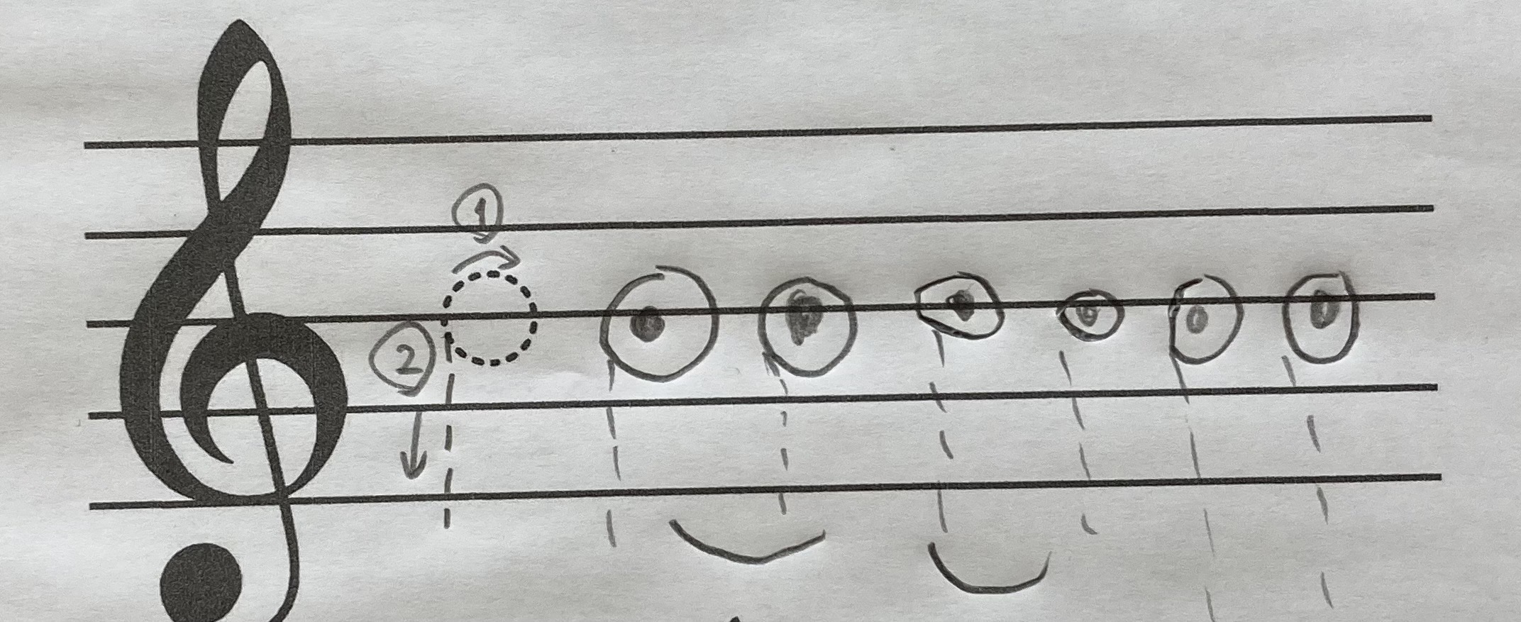 おんぷのお顔がたくさん🎵 2026年1月18日2026年1月18日 Tくんはいつもお兄さんのKくんと一緒にレッスンに来てくれます。Kくんのレッスンを待っている時、Tくんは宿題をしたり、本を読んだり、疲れていると気持ちよさそうに😴💤の時も…😊 先日は特にやる事もなく元気だったので『ラ』と『シ』の音符を書いてもらいました。しばらくしてなんだかこちらを向いてニコニコしているなと思ったら…おんぷのお顔がたくさん‼️他にもたくさん書いてくれました。 楽しくて癒されますね🙂😳😭🙄😆♪